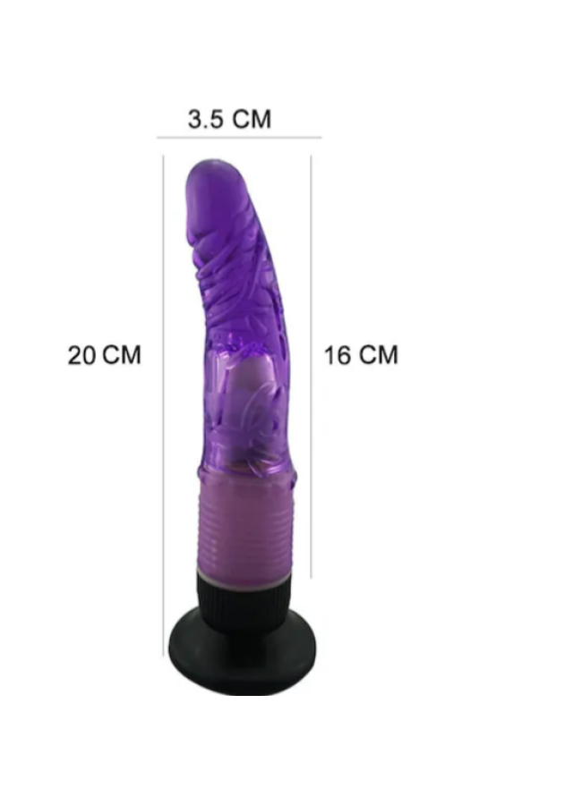 20 CM Anal ve Vajinal Mor Titreşimli Jel Vantuzlu Vibratör Dildo