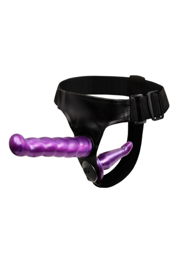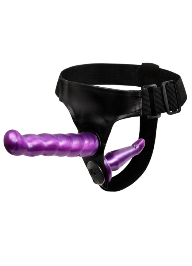 Censan Çift Taraflı Mor Renk Belden Bağlamalı Dildo